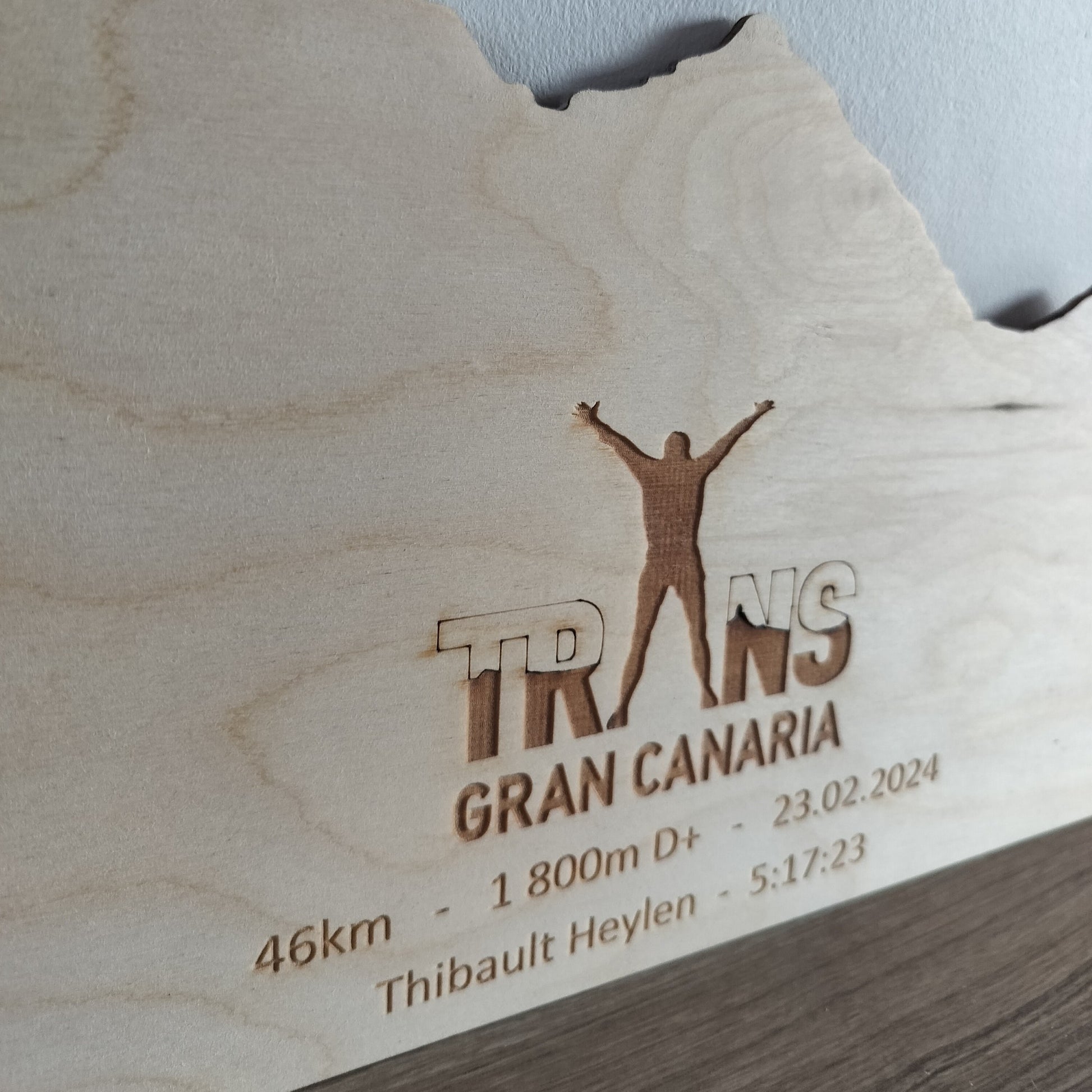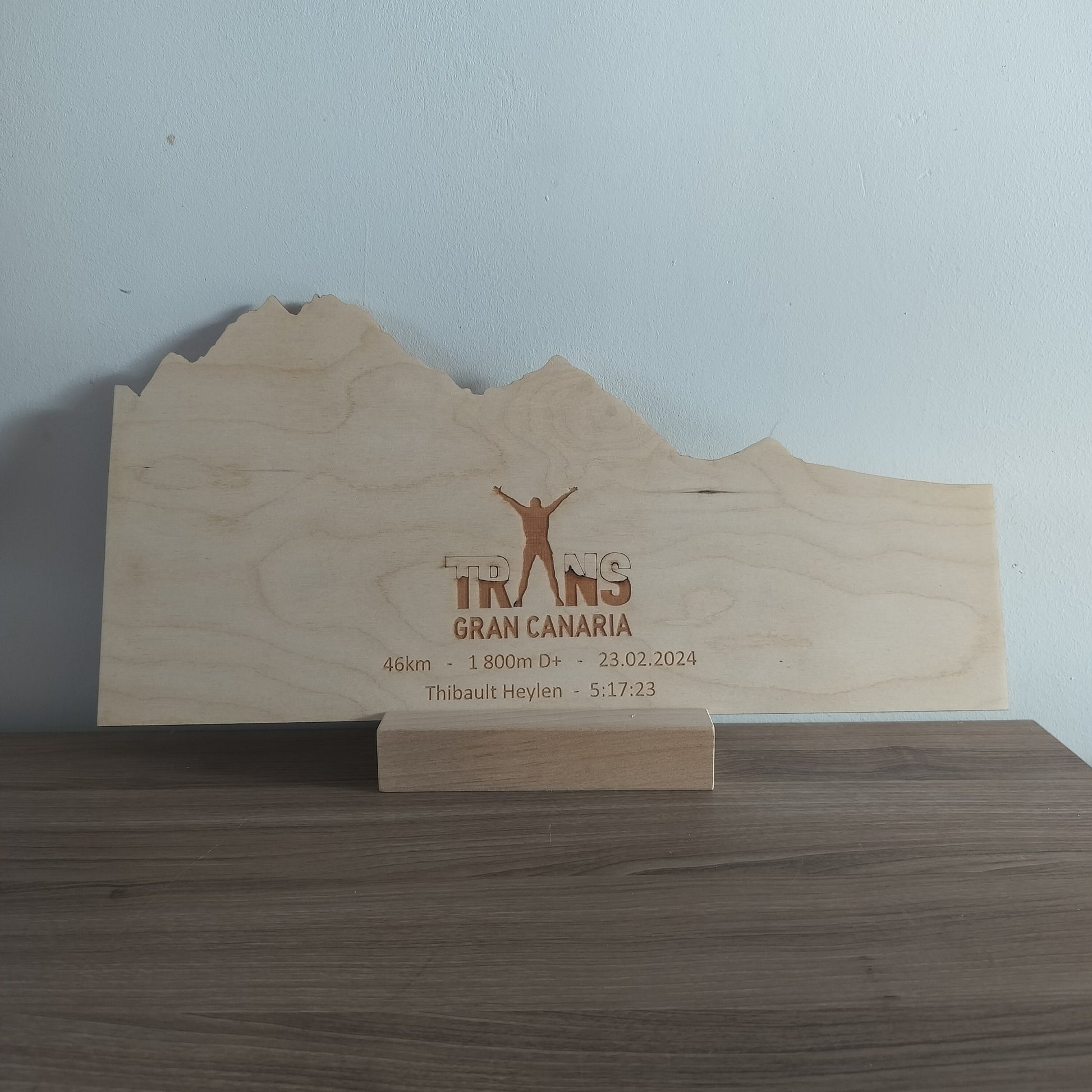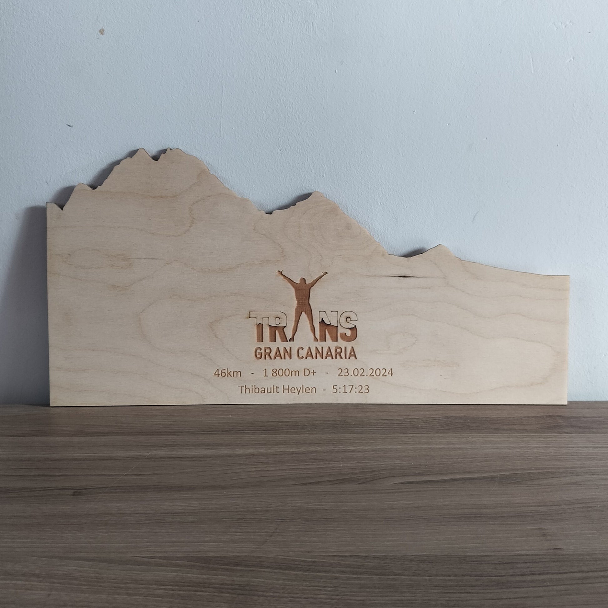 The Profile Map is precision laser-cut from 3mm birch wood and displays the elevation profile of your race — whether trail run, epic ride or a crazy mountain hike .
